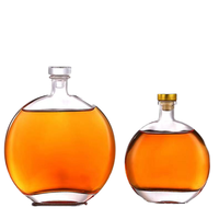 Factory Direct 250ml/500ml Transparent Glass Essential Oil Bottle Flat Shape Empty with Cork Sealing for Vodka Whisky Brandy Rum