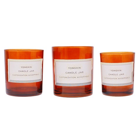 Venta al por mayor en stock tarro de vela de vidrio redondo ámbar vacío de lujo sin tapa