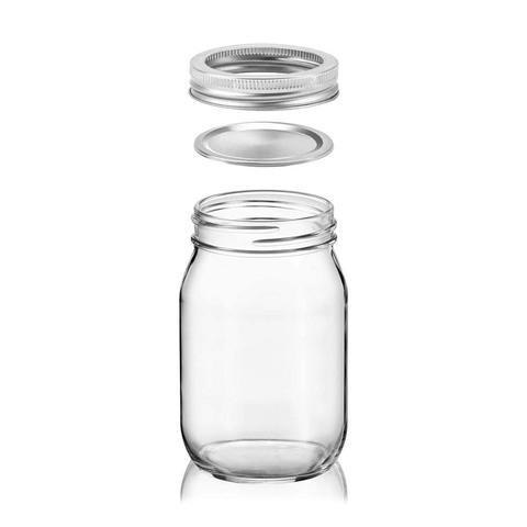 Tarro de vidrio Mason de 16 Oz con tapa de metal para decapado, velas para conservas, decoración del hogar, avena durante la noche, conservas de frutas, mermelada o gelatina