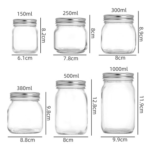 8oz 12 Oz 16 Oz 32 Oz Mason Jars Frascos de conservas con tapa de metal Boca ancha Mason Jam Jar