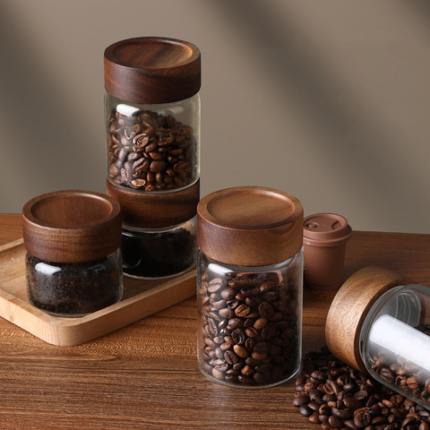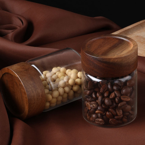 Frascos de especias de vidrio clásicos con tapa de acacia, venta al por mayor, almacenamiento doméstico de cocina para la conservación de la frescura de los contenedores de alimentos