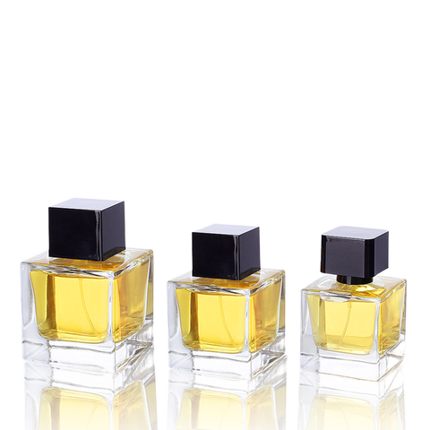 Nuevo diseño cuadrado 30ml 50ml 100mL botella de Perfume en aerosol vacía de vidrio sin tapas