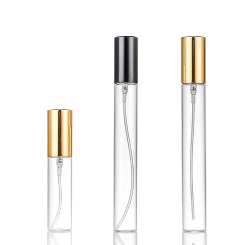 Mini botella de Perfume en aerosol de vidrio de 5ml y 10ml, botellas de niebla fina recargables, atomizador de cosméticos en aerosol de muestra para viajes