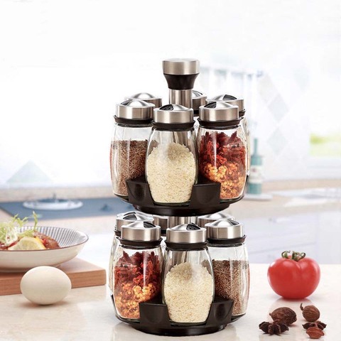 Botella de vidrio para condimentos de cocina, salero, contenedor de especias, tarro de especias con estante giratorio