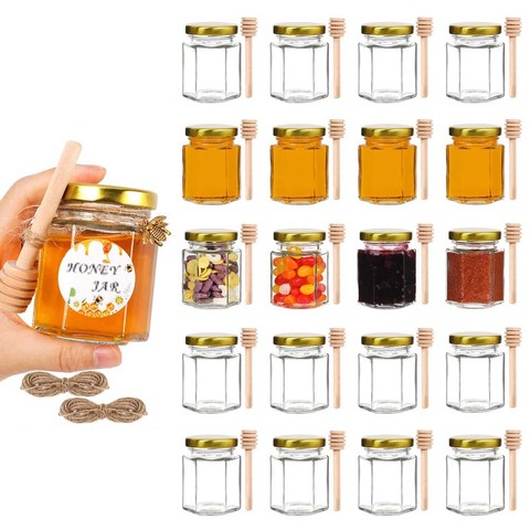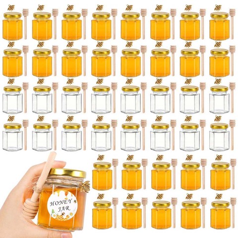 Frascos hexagonales de miel de alta calidad, 1,5 oz, 45ml, Mini frascos de miel de vidrio de lujo con tapa