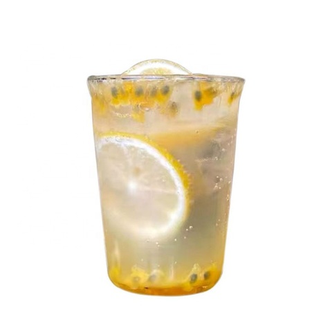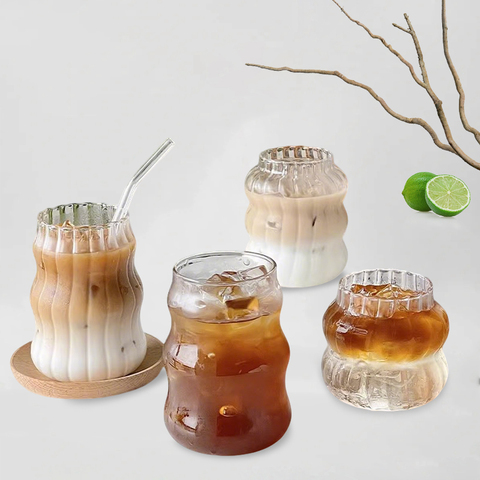 Taza de vidrio de borosilicato alto con tira Vertical, taza de café helada de té de burbujas de jugo de fruta de gran capacidad a la moda moderna