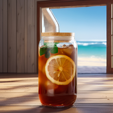 Vaso de lata de cerveza de 16 Oz de nuevo estilo con cubierta de bambú y pajita de vidrio utilizada para taza de café helado batidos encantadores Boba té whisky agua